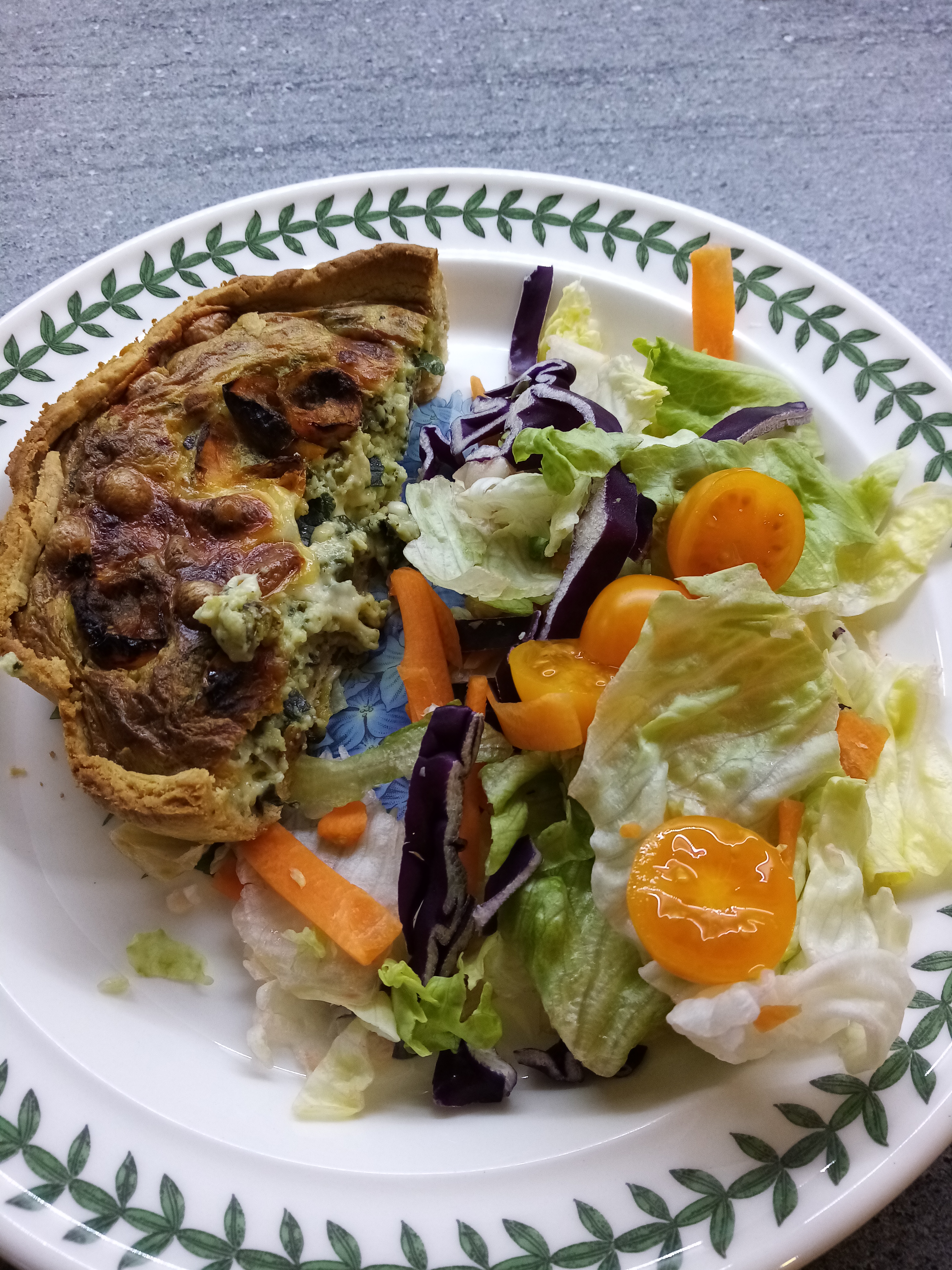 - Wednesday: Reduced price quiche from the freezer. Half each, which was a bit greedy but it was too delicious not to eat warm.....